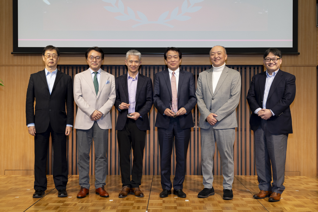 本年はヤンマーホールディングス株式会社取締役CDOの奥山博史氏と、株式会社JALカード代表取締役社長CEOの西畑智博氏が選ばれ、昨年受賞した株式会社三井住友フィナンシャルグループ磯和 啓雄 氏より受賞トロフィーの授与が行われた。