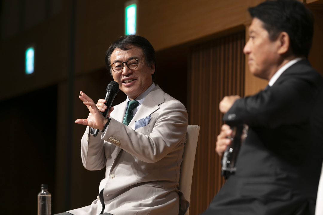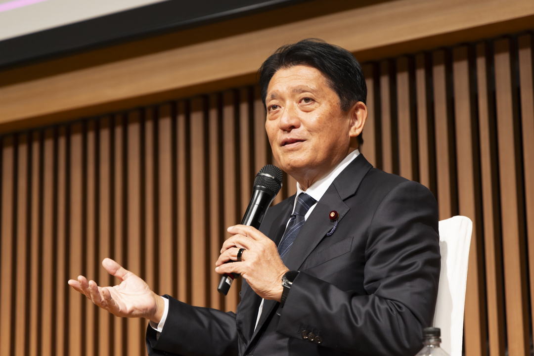 続いて、初代デジタル大臣であり衆議院議員である平井卓也議員より「Human-AI共奏社会によって社会は新たなステージへ次の10年をどう生き抜く“新しい日本社会の姿”とは?」と題して当団体の代表の加茂との対談が実施された。