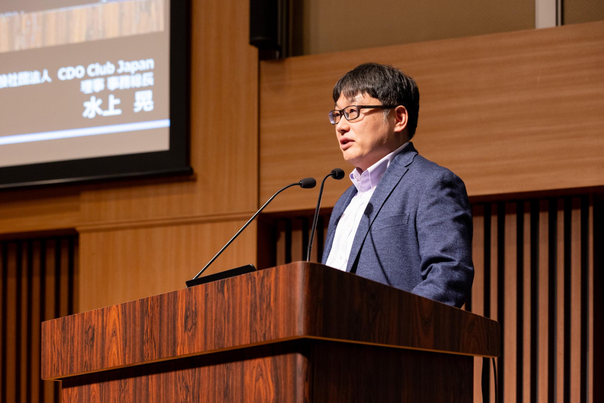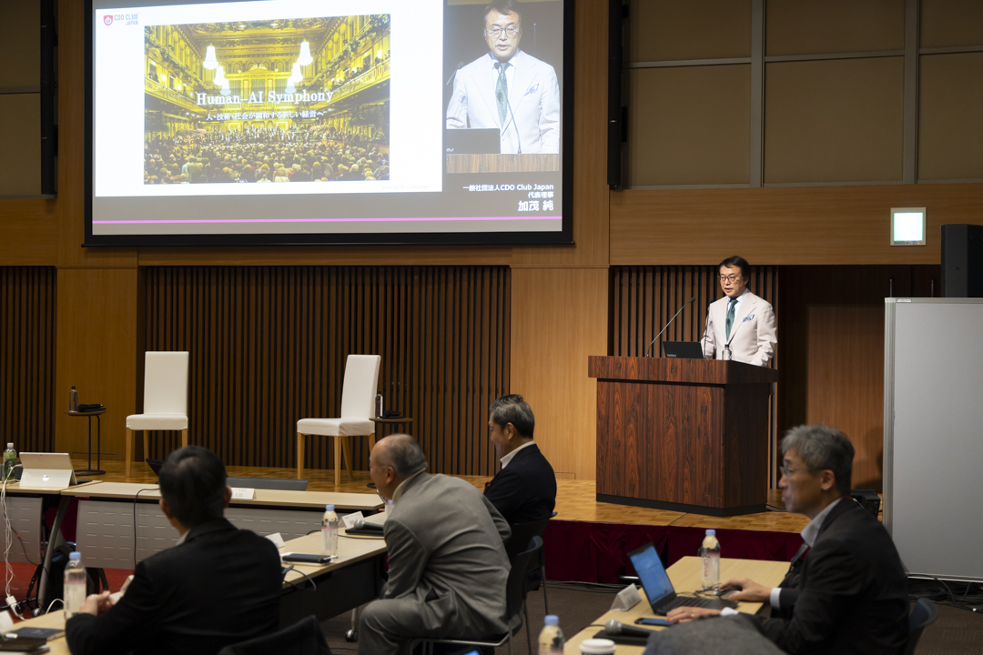 冒頭開会の挨拶として、CDO Club Japanの代表理事の加茂純より、AI技術の進化は、人・データ・プロセス・技術がひとつの流れ、融合する時代へと突入している点について言及した。また、AI&DXはシステム導入ではなく、社会の“構造デザイン”へと軸を移している点にも触れ、そのような“社会全体の調和”をデザインする新しい社会のオーケストレーターとしてCDOが担う役割は進化していく可能性を述べた。