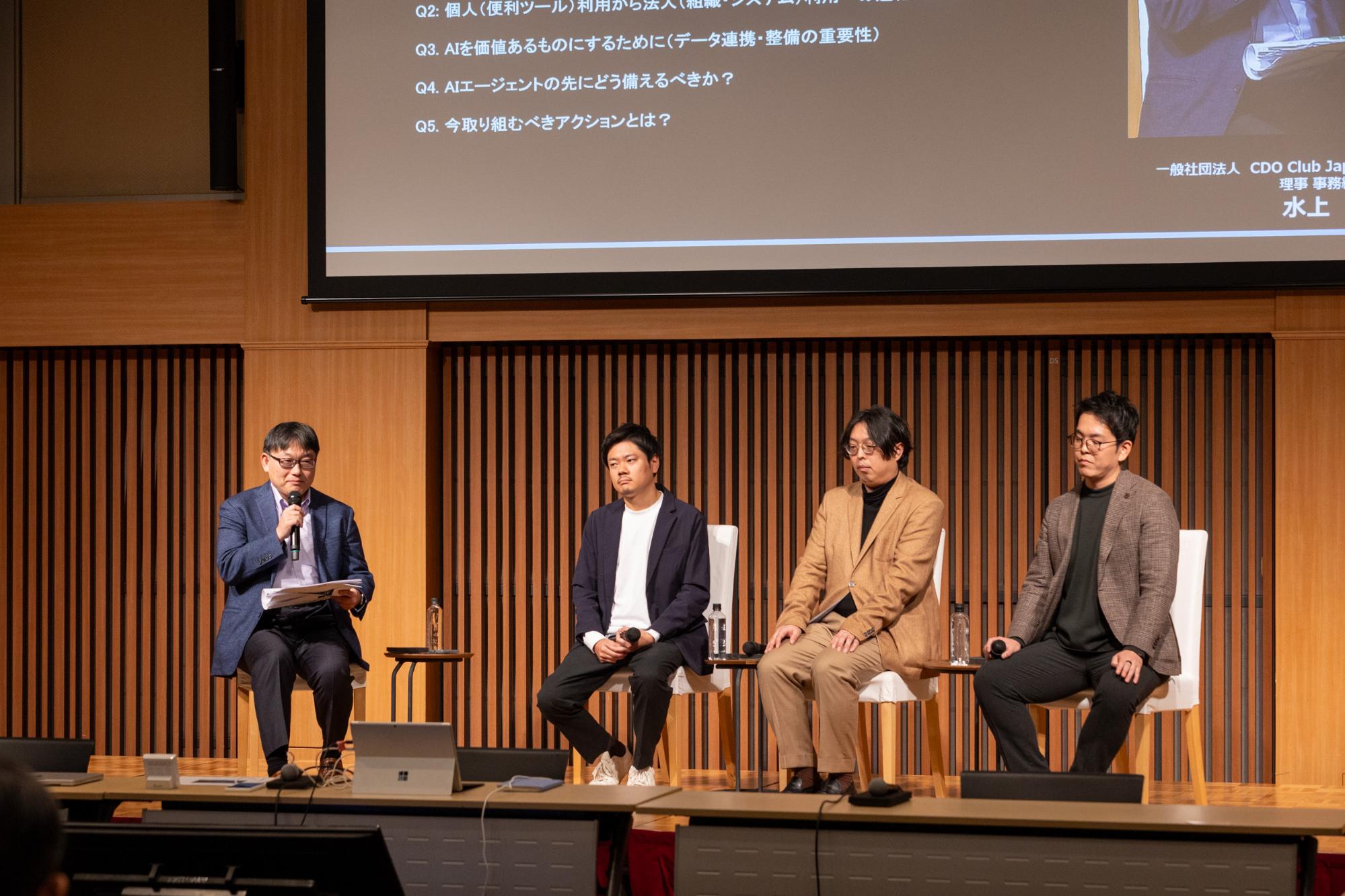 2日目のCDO Summit Tokyo 2025 Winterでは、CDO Club Japanのメンバーが一堂に会し、「AI-Human symphony-人とAIが共奏する社会・組織の未来とは?」をテーマに議論が交わされた。